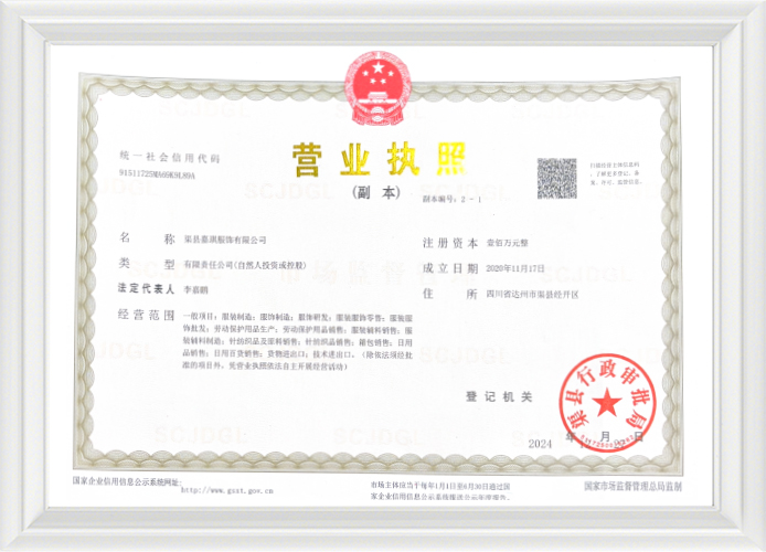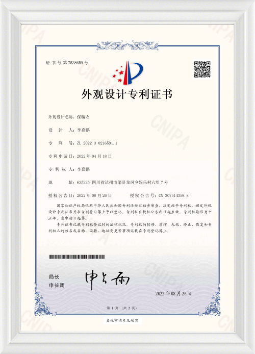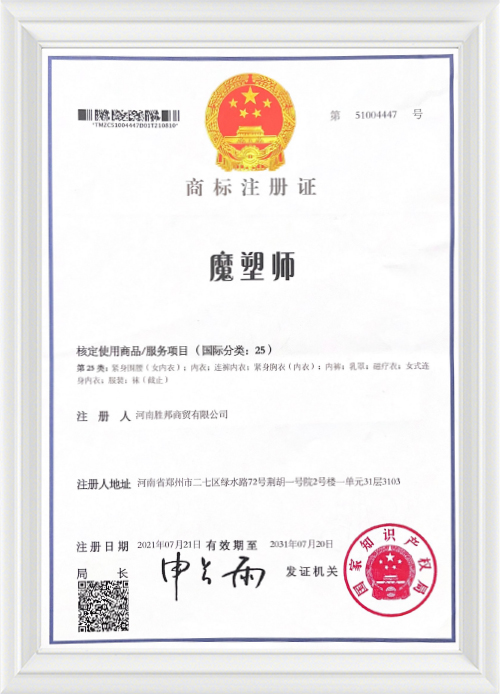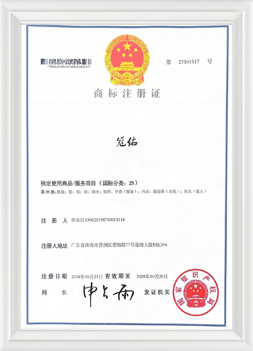 Сертификат нижнего белья De Rong