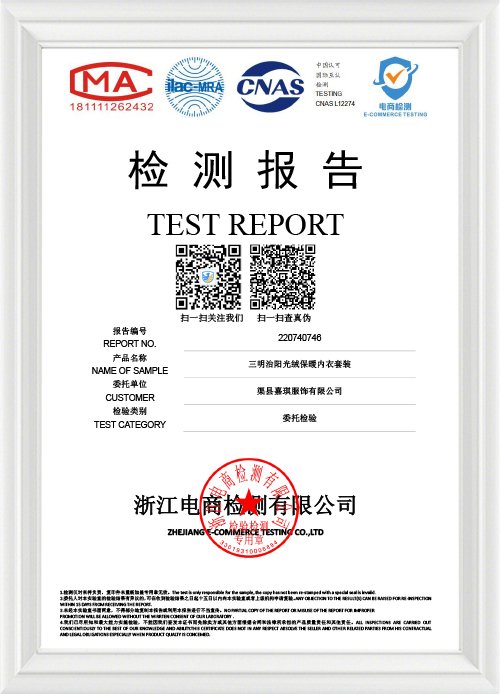 Сертификат проверки качества осеннего нижнего белья